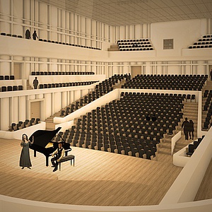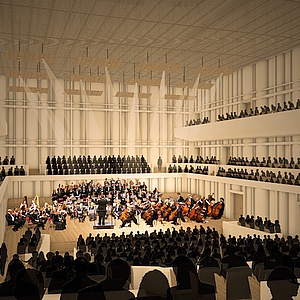 Der konzipierte Saal ist entsprechend der Vorgaben der Auslobung auf eine Nutzung für 990 Personen optimiert, von denen ca. 558 im Parkett und 446 auf den Rängen (184 Seitenrang, 82 Chor, 180 Oberrang) ihren Platz finden. Durch demontierbare Zusatzreihen etc. läßt sich die Zuschauerkapazität auf 1096 Plätze steigern. Tags: Konzerthaus Philharmonie Musikzentrum Bochum