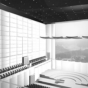Somit ergeben sich für Zuhörer und Musiker optimale Hörbedingungen durch Bühnengrösse, Reflexionslenkung und Staffelung. Durch die weisse Oberfläche der Wände konzentriert sich die ganze Aufmerksamkeit auf das Podium.